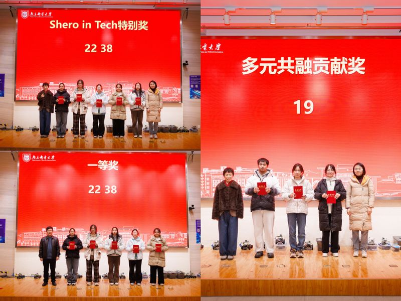 决赛邀请到多位学术界和产业界的资深专家担任评委,包括省电赛胡仁杰教授等专家组代表以及我校郝学元教授、陈建飞副教授、王健老师和窦昱钦老师和新思科技资深应用工程专家黄贝、教育项目经理王婧共同担任评审。经过展示与评比,共评出一等奖2组、二等奖4组、三等奖9组及Shero in Tech 特别奖2组、多元共融贡献奖1组。